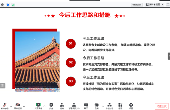 王强院长对述职会议进行了肯定,并对学院一年来的各项工作取得显著成效予以充分肯定,同时也指出各支部工作有很多的特色及亮点,仍需要在推广和宣传报道上进一步下功夫。
