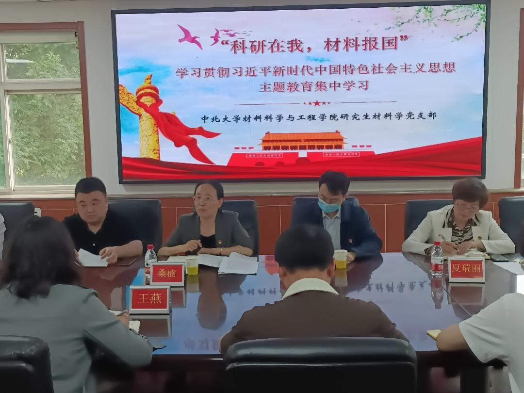 5月29日下午3点,研究生材料学党支部“科研在我 材料报国”学习贯彻习近平新时代中国特色社会主义思想主题教育集中学习会在学院二层会议室召开。省主题教育第一批巡回指导组第二十四组副组长、山西能源学院党委副书记桑楠,指导组成员冯涛、王鹏亲临指导。我校主题教育领导小组办公室成员,党委统战部、党委组织部负责人夏瑞丽及院党委书记廖海洪、党委副书记郭云霞等与支部学生党员一起参加学习。会议由研究生材料学党支部书记王燕主持。会议主要有以下几项议程: