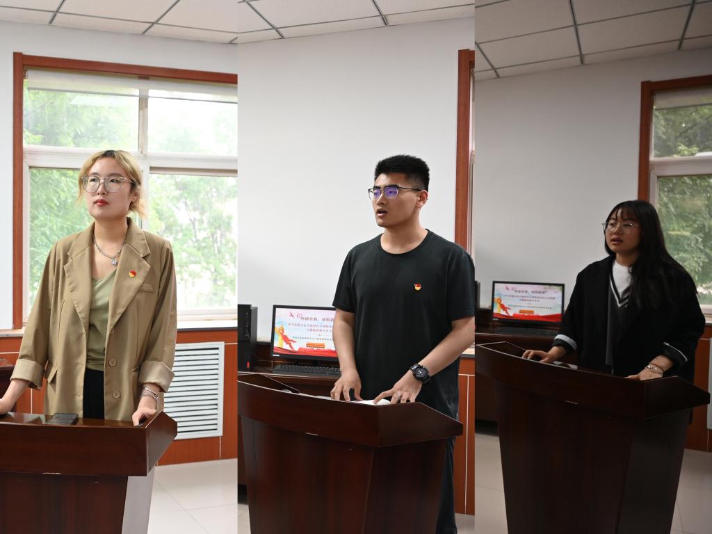 首先,廖海洪简要介绍了学院基层党建工作取得的成效及学科建设、学院发展规划等。彰显了研究生材料学院党支部近年来的卓越建设,以及在教学、科研等方面取得的一系列成果。同时表示研究生材料学院党支部会持续精进,优化方案,丰富党支部的载体形式和活动形式;其次,由王燕主持会议,进行“科研在我,材料报国”的集中学习。王燕先介绍了前期党员自学和党小组学习情况。本次学习内容主要围绕“聚焦高质量发展”“创新驱动 科技强国”“青年学生的责任与担当”三个方面进行。按照学习计划和要求,前期已持续开展了支部党员个人自学和党小组集体学习,通过学习,每一名党员同志都反响热烈。集中学习会上,支部学生党员任相琳、徐浩浩、张丽敏结合党的二十大报告、《习近平新时代中国特色社会主义思想专题摘编》及习近平总书记系列讲话,分别以《聚焦高质量发展》《创新驱动 科技强国》《青年学生的责任与担当》为主题领学。领学完毕后,景心怡、米嘉、刘汉浩、林金、安庆龙、关静6位同学将理论学习心得与自身科研学术成果、学习生活工作结合起来进行了分享。他们表示要立足自身发展,勇于科研,以火热的青春展现新时代青年学生的靓丽风采。
