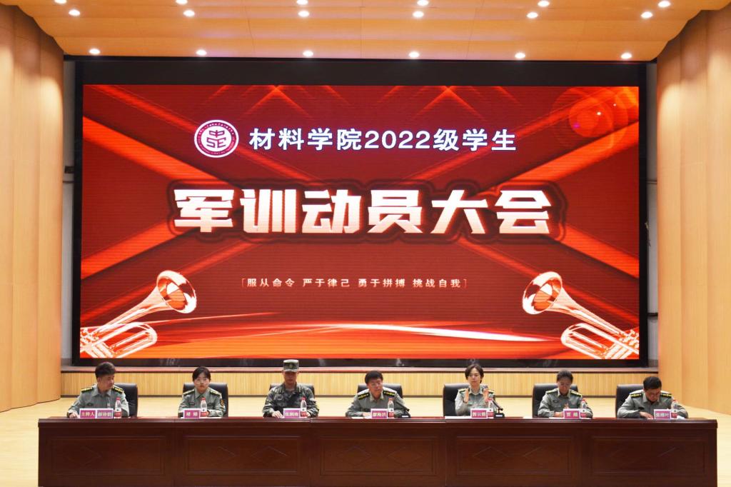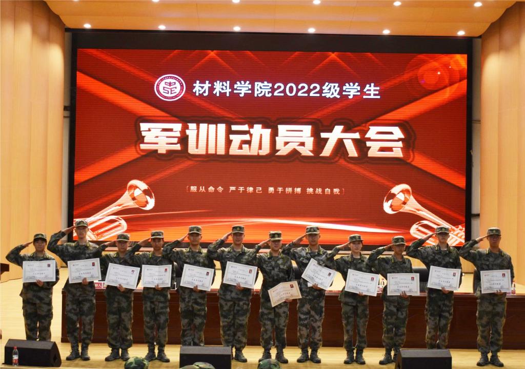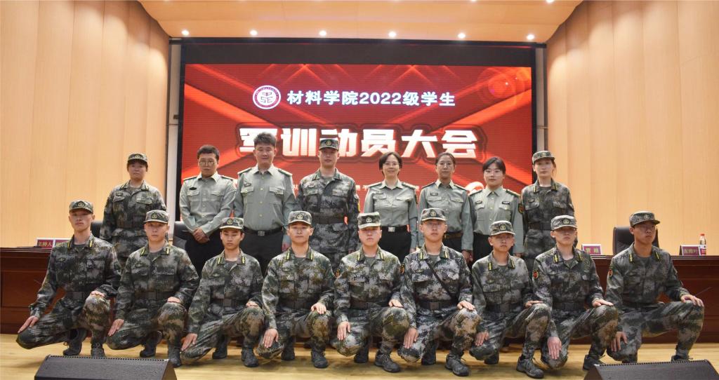 大会开始,全体肃立,奏唱国歌,在令人澎湃的国歌声中,军训就此拉开了帷幕。院党委副书记郭云霞为2022级学生军训工作进行了周密详细的部署及严格明确的要求,接着主席台嘉宾为全体教官颁发聘书。22030241班王森代表参加军训的全体同学在大会上郑重承诺,表示在军训期间必将服从指挥、吃苦耐劳、拼搏向上、团结互助,严格要求自己,练就过硬本领。教官代表张炳南表示,担任本次军训任务的所有教官定能不负所托、全力以赴,为提升各位同学的军事技能和培养大家的意志品质而贡献自己的力量。院党委书记廖海洪发表了精彩的动员讲话——我们要坚定理想信念:时代各有不同,青春一脉相承,吾辈当思考使命担当;要锻炼意志品质:炎炎夏日,高强锻炼,苦与累方能奠定栋梁之材的扎实根基;要练就过硬本领:国防知识,军事本领,集体主义与爱国主义共同滋养青春希望。最后,我院师生全体起立,奏唱校歌《再铸辉煌》,材料学院 2022 级学生军训动员大会圆满结束!