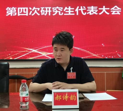 郝诗韵老师代表学院党委致开幕辞,他充分肯定了广大研究生干部的努力奉献,并对全体研究生代表提出了四点希望:一是希望广大同学坚定理想信念,成为堪当民族复兴大任的时代新人;二是希望广大同学践行社会主义核心价值观,成为德智体美劳全面发展的社会主义建设者和接班人;三是希望研究生会同学服务研究生成长成才,成为研究生的贴心人;四是希望广大同学练就过硬的本领,成为学生的主心骨。郝老师进一步强调,全体研究生代表要以习近平新时代中国特色社会主义思想为指导,在校、院党委的正确领导下,在校研究生会的具体指导下,立足立德树人根本任务,服务学生成长成才,弘扬太行精神,秉承“致知于行”校训和“真材实料,精益求精”院训,团结带领全院研究生,为实现中华民族伟大复兴的中国梦贡献中北材料人的青春智慧和力量。