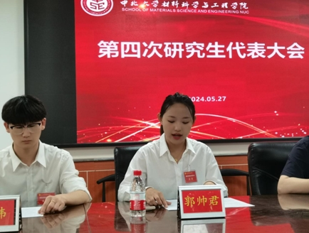 2024年5月27日下午15时,乐鱼官网第四次研究生代表大会在笃学楼二层20A大会议室隆重召开。学院团委书记郝诗韵,学生科老师韩伟,学生科老师李静,中北大学研究生会执行主席郭帅君,全体院级研究生代表出席会议。会议由院研究生会赵雨薇同学主持。