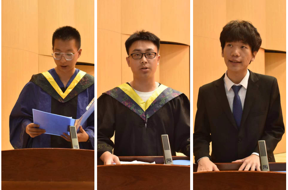 随后,研究生毕业生代表李家豪同学和本科生毕业生代表张世成同学依次发言,阐述了他们对于“致知于行”校训、“真材实料、精益求精”院训以及中北精神的切身感悟,并表达了对于母校悉心培育的感谢。在校生代表、院学生会主席解琦臻同学为学长学姐送上毕业祝福。