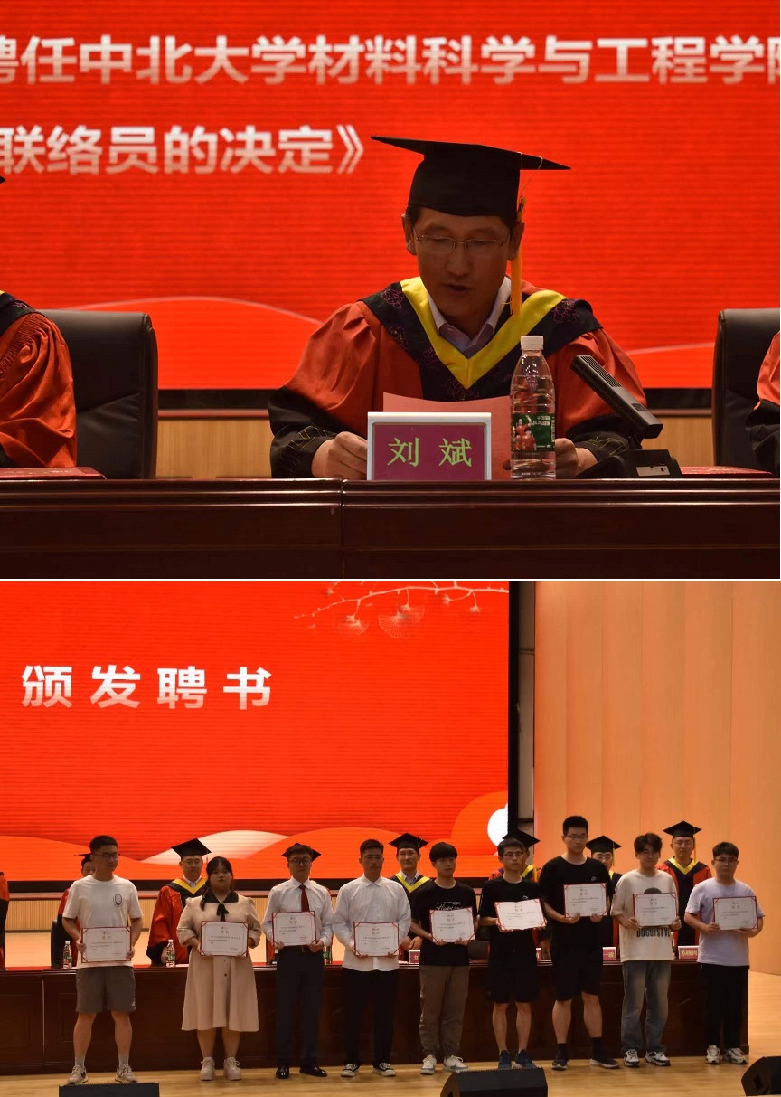 副院长刘斌宣读《关于聘任乐鱼官网2024届校友联络员的决定》,主席台嘉宾为2024届校友联络员颁发聘书。希望各位校友联络员积极主动开展与母校的联系工作,共同促进学校与学院的发展,为母校与校友之间搭建起更宽更广的桥梁。