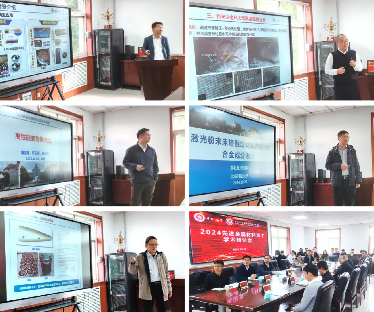 会议分享了先进金属结构材料、先进复合材料、材料基因工程、金属增材制造与粉末冶金等领域的最新研究成果。会议特邀报告包括宋晓国教授《异质材料及复杂结构连接及应用》、刘彬教授《粉末冶金高熵合金的研究》、潘虎成教授《新型变形镁合金微结构调控与高强塑化》、刘壮壮教授《激光粉末床熔融增材制造高性能合金成分设计》、以及我院薛勇教授《镁铝大型薄壁高筋构件均匀强韧化及长筋挤压技术》。各位专家与我院师生针对先进金属材料加工领域中具有重大需求、创新性、前沿性的研究主题、研究成果及未来发展方向进行了交流和探讨。