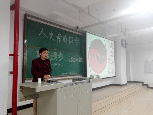 讲座开始,倪教授用习近平总书记的“中国梦”及丰子恺、雨果等名家的名言引出了报告主题——《易经》之慧。紧接着,倪教授就当下学习方法提出了自己的观点:学会探索远比成绩更重要;智慧是靠悟出来的。这些观点赢得了听众的阵阵掌声,场中气氛高涨。随后,倪教授用易经原文中的名句“天行健,君子以自强不息;地势坤,君子以厚德载物”解释了易经的基本理论——天人合一,他强调人与自然的和谐相处,而不是行事相悖于常理。倪教授用九个词语概括了易经给我们的启示:顺应天人、见几而作、刚柔并济、自强不息、厚德载物、忧患意识、中道而行、太合之道、忠诚守信。他认为读懂易经之智慧,人将不会犯战略性错误。易经中所含内容博大精深,听过倪教授的详细分析解释后,大家感悟颇多,受益匪浅。