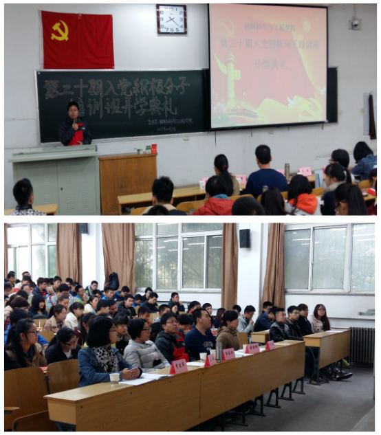 11月7日上午8:00时,leyu.com党校在10202H教室举办了第二十期入党积极分子培训班开学典礼。参加本次开学典礼的有院党校副校长、院党委副书记廖海洪,学生党支部书记李艳、毋登辉、王敏及李俊萍,开学典礼由院团委副书记李培真主持。