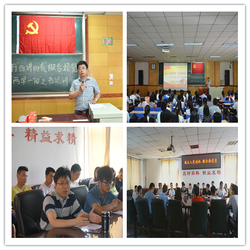 为庆祝建党95周年,喜迎“七一”践行“两学一做”,6月29日下午4:00,我院党委书记侯华在09102H教室给全院师生党员做“践行‘四讲四有’做合格党员”党课。侯书记围绕什么是“四讲四有”、怎样做到“四讲四有”及习近平总书记论如何做合格党员三个方面来讲解。6月30日上午10:30,党委副书记廖海洪在院办会议室给材料成型及控制工程专业学生党支部党员讲主题为“端正入党动机,做合格党员”党课。廖副书记结合我院历届学生案例从六个方面详细论述了如何做一名合格的学生党员,请毕业生党员在同学中践行文明离校并站好最后一班岗。