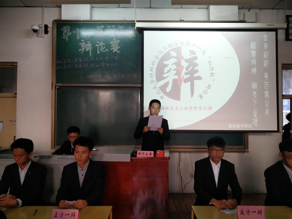 经过执行主席慷慨激昂的介绍,大赛正式拉开了帷幕。首先进行的是开篇陈词,参赛队员进行了精彩的论述,用高度概括性的语言阐述自方观点,把赛场的气氛点燃。接下来的论述环节,选手们旁征博引,抓住对方漏洞,引经据典,步步紧逼,与对方辩手唇枪舌战,一次次的把赛场气氛推向高潮,引来观众阵阵欢呼。无论是仪态仪表还是口才能力,材子们的表现都令人叹服。