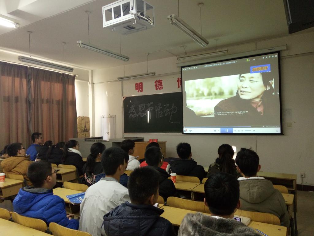 首先,全体团员在本支部团委的带领下于10409Z教室一起观看了一个有关于感恩父母的视频。同学们认真地将其看完之后,相互交谈了产生的感想及对父母的理解,感受到视频中的爱,也产生了一些想要感恩父母和他人的意愿。本次观看感恩视频的活动达到了预期的效果。