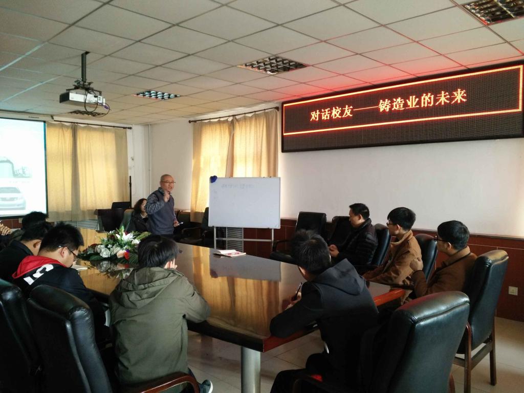 由于课程及考试的原因,好多同学未能参加12月1日的校友访谈,袁良武学长得知后,于12月2日上午10时在材料学院二层会议室为13级、14级铸造方向的同学开展了题为“铸造业的未来”的对话活动。