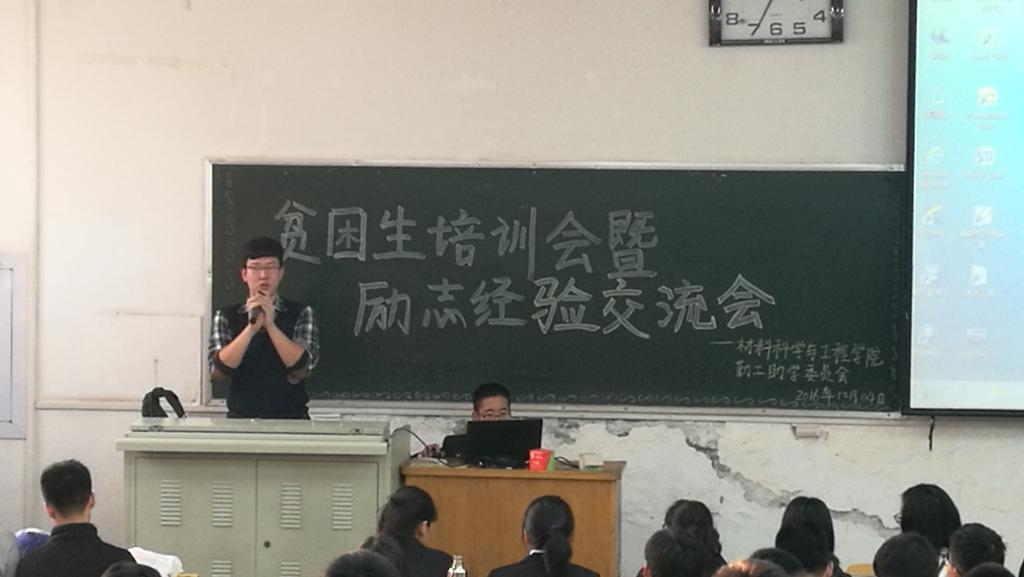 2016年12月4日下午3点,由leyu.com勤工助学委员会举办的贫困生培训会暨励志经验交流会在10202h教室准时开始。勤工助学委员会全体成员以及大一大二的所有贫困生参加了此次交流会。学生科殷炳叶老师和勤工助学部分服务队队长及兄弟院助学部部长出席了会议。