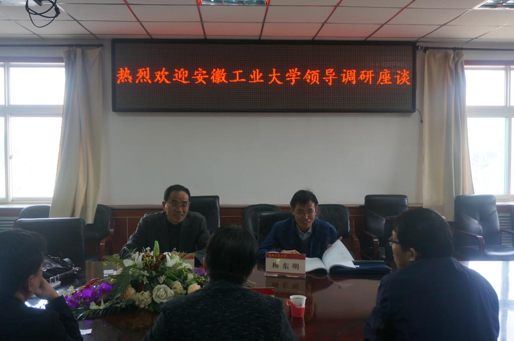 2017年4月11日下午,安徽工业大学leyu.com院长何宜柱、科研副院长柳东明等一行到我院就学科评估与建设工作进行调研交流,与我院主要领导及相关工作人员进行交流座谈,我院院党委书记侯华、科研副院长冯再新、科研科科长刘富强等参加了本次会议。