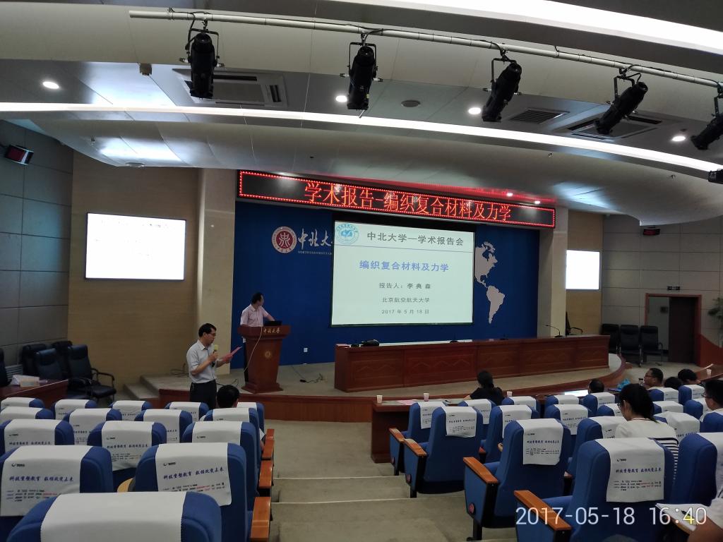 2017年5月18日下午,我院邀请李典森在瑾瑜国际会议中心做题目为“编织复合材料及力学”报告,报告由我院科研副院长冯再新主持。鉴于李典森研究员在复合材料领域的研究水平和所取得的研究成果,我校特聘其为我校的客座教授,由我校副校长赵贵哲教授为其颁发聘书。