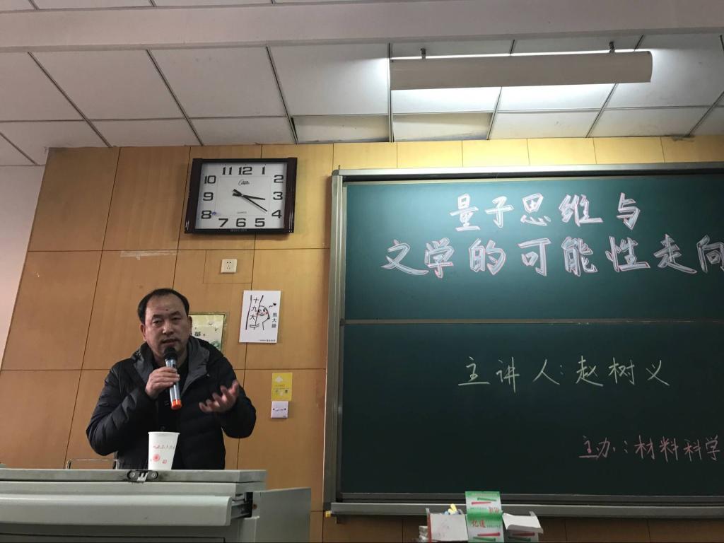 哲学思维能给人提供一种正确的人生观和价值观,掌握认识世界和改造世界的正确方法,从而在社会实践中产生出巨大的推动力。作为理工科大学生,未来的工程技术人员,哲学思维能力更是必不可少。一场题为“量子哲学思维与文学的可能性走向”的知行讲坛于2017年11月18日下午走进了乐鱼官网。主讲嘉宾为我国著名作家、“赵树理文学奖”散文奖获得者赵树义老师,太原日报资深记者李晓并女士、著名诗人合心女士、校党委宣传部部长薛实军,校招生与就业工作处副处长刘宝华、环境与安全工程学院王海芳、材料学院党委副书记郭云霞老师一同聆听了此次讲座。