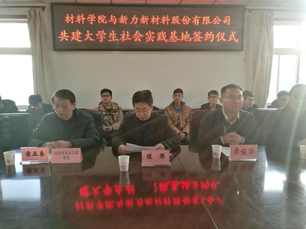 签约仪式上,侯华院长介绍了材料学院的基本情况,同时对浙江新力新材料股份有限公司对学院社会实践工作的大力支持表示感谢,强调社会实践基地的建立将为我院大学生社会实践工作规范化、常态化、专业化起到进一步的促进作用。能够有效的帮助我院学子通过社会实践了解社会、了解国情、增长才干、奉献社会、锻炼毅力、培养品格、增强社会责任感。