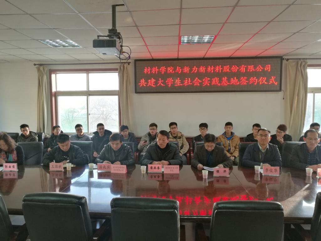 为了深入贯彻落实习近平总书记在全国高校思想政治工作会议上的讲话精神和《高校共青团改革方案》的相关要求,进一步适应高等学校人才培养的要求,提高大学生的认知国情,熟悉专业,提升知识应用能力,11月23日,leyu.com与浙江新力新材料股份有限公司共建社会实践基地签约仪式在材料学院二层会议室举行。浙江新力新材料股份有限公司技术总监汤兆宾先生,人力资源部部长王国桃先生,校团委书记李俊华老师,材料学院党委书记薛亚奎教授、院长侯华教授,副书记郭云霞老师,副院长刘斌教授,团委书记毋登辉老师出席了签约仪式,签约仪式由党委副书记郭云霞老师主持。