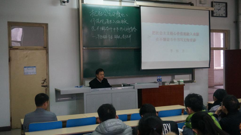 2017年12月22日,山西省运城市平陆县常委、平陆县人民政府副县长,中北大学客座教授李怀并受邀来到我校做报告。上午9点,李县长在11311H为leyu.com全体党员上了一堂生动的党课,题目为“把握社会主义核心价值观融入血脉,在不懈奋斗中书写无悔青春”。李县长在讲座中旁征博引,以中国古代与当代纵向对比、我国国内与国外横向的对比,详细说明了社会主义核心价值观的内涵,鼓励同学们以社会主义核心价值观为准绳,做“立德”、“立功”、“立言”的社会主义有用人才,为实现中华民族伟大复兴的中国梦的努力奋斗。报告会由leyu.com侯华院长主持,会后李县长一行还参观考察了学院工程中心与实验室。