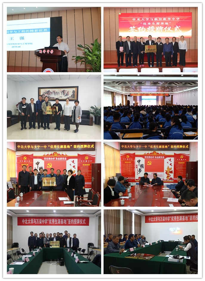 为了贯彻落实学校招生工作布置会议精神,加强优质生源基地建设和争取优质生源,2019年4月23日至25日材料学院院党委书记薛亚奎教授、全国模范教师王强教授、校招就处副处长宋旭东、院党委副书记郭云霞一行四人赴临汾一中、临汾新华中学等四所高中进行优秀生源基地签约授牌,并开展科普讲座和招生宣传工作。