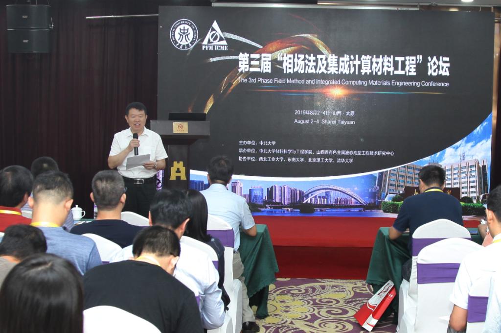 第三届“相场法及集成计算材料工程(PFM-ICME2019)”论坛于2019年8月2日至4日在山西省太原市黄河京都大酒店召开。本次论坛由中北大学主办,中北大学材料学院、山西省有色金属液态成型工程技术研究中心承办,西北工业大学、东南大学、北京理工大学、清华大学协办。由沈兴全校长、李魁武院士、王一德院士、谢建新院士等担任顾问,由赵宇宏教授担任大会主席。