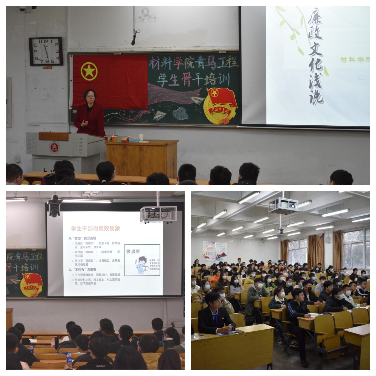 为深入贯彻落实习近平总书记关于加强廉洁建设的重要讲话精神,认真落实党中央《关于加强新时代廉洁文化建设的意见》及山西省委、省纪委监委关于全面建设清廉山西的部署要求,响应校党委校纪委创建清廉中北的号召,推动“清廉作风、清廉文化”融入校园,让清廉之风吹遍校园每个角落。2022年10月29日上午在10104H教室,材料学院党委副书记郭云霞为学院学生干部开展了一堂廉政文化教育课。