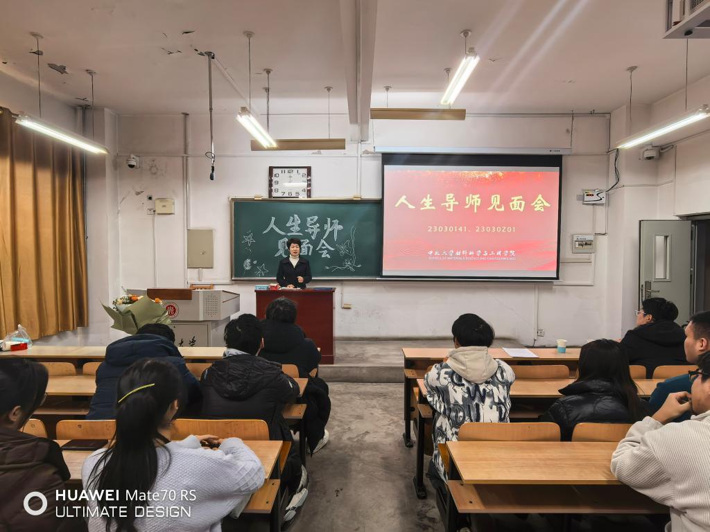 材料学院23030Z01班、23030141班本学期人生导师见面会于2024年12月26日16:00在14202H举行,校人才工作办公室主任、党委教师工作部部长栗秀萍出席见面会,班主任宋和谦、23030Z01班和23030141班全体同学参加,见面会由院团委书记郝诗韵主持。