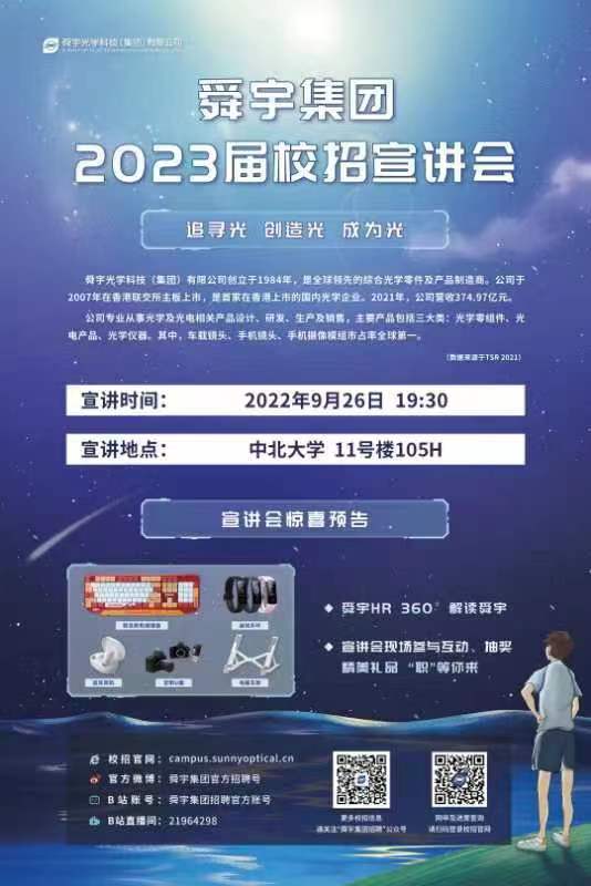 香港上市公司舜宇集团2023届校招宣讲会预告