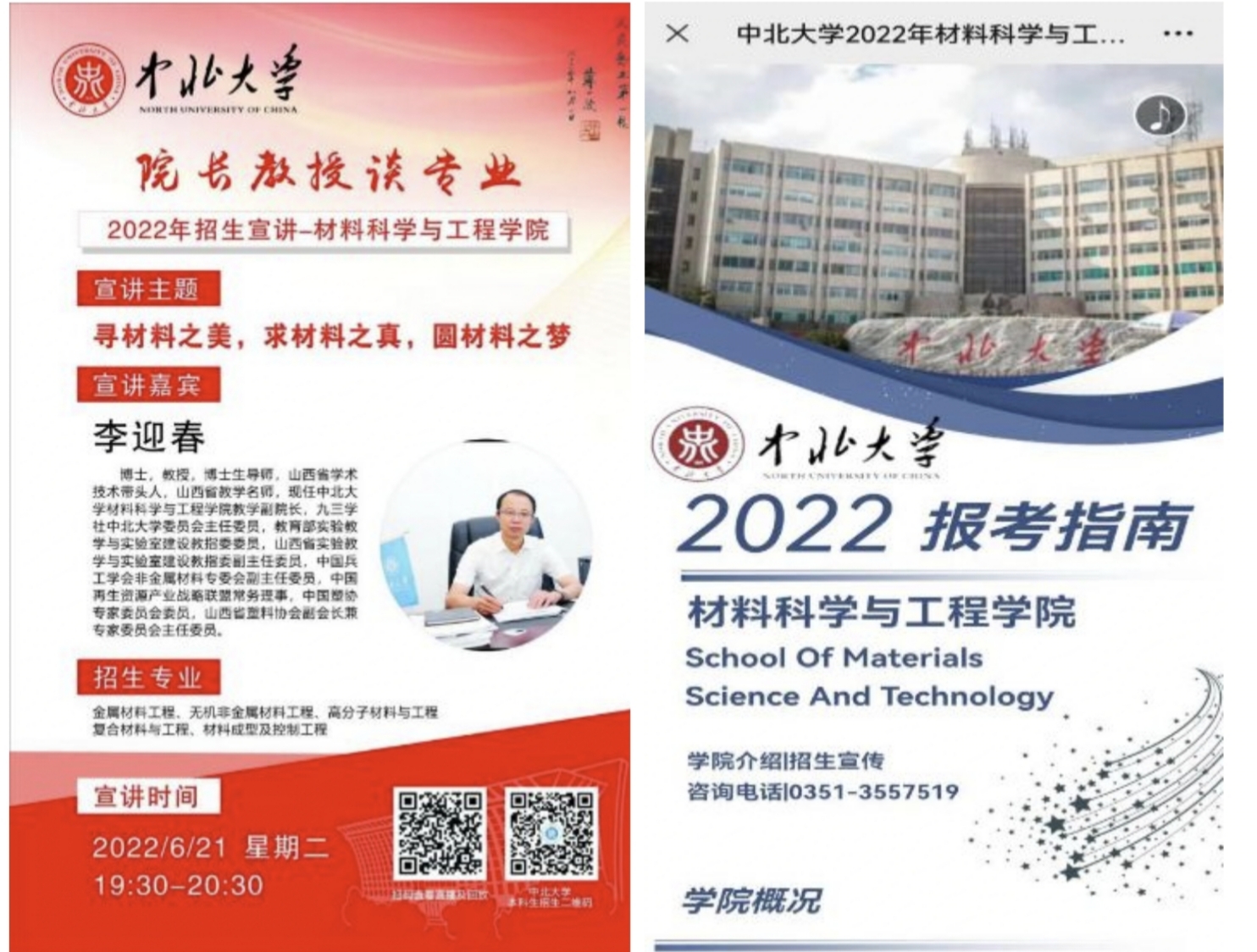 三是做好线下招宣工作,精准对接,加强优质生源中学联系。积极通过学校赴省内南线和北线的两支招生宣传小组以及学院老师和在校学生积极联系省内各市县的重点高中,从6月25日到29日间赴文水中学、平遥中学、永济中学、阳泉一中、忻州一中、阳城一中等进行线下宣传。通过宣传咨询,积极鼓励引导优秀学子报考中北大学及材料学院。