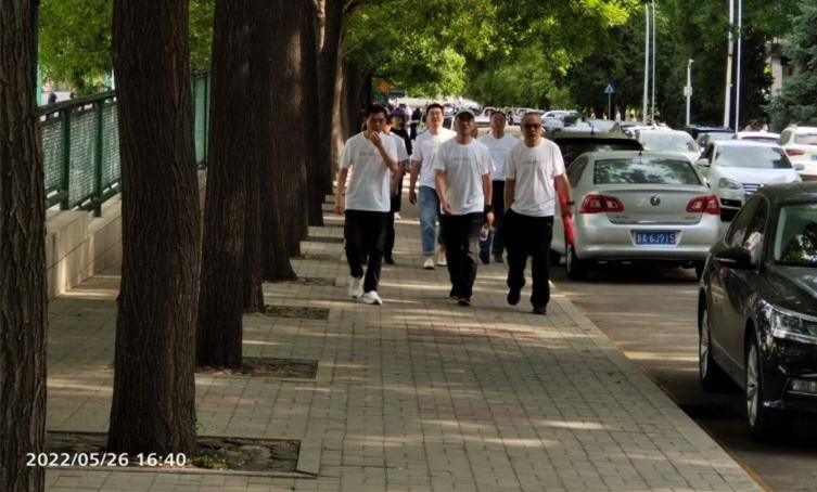 活动伊始,全院教职工在学院楼前集体合影留念。五月底的中北校园,枝叶葱翠,露洒长松。大家欣赏着校园内的美景,呼吸着清新甜润的空气,阔步在这个天然大氧吧之中,一路上时而交流工作,时而沟通友谊,欢歌笑语、气氛和谐,为校园增添了一抹激扬色彩。走到终点,每个人笑靥如花,享受着运动带来的快乐。