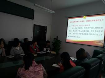郭老师通过自己的感悟,又一次为我们解读了十九大的重要精神,最后她对在座每一位同学提出了希望:“青年兴则国家兴,青年强则国家强,在座每一位不断向党组织靠拢的青年,都要有理想、有本领、有担当,这样我们的国家才会有前途,民族才会有希望。我们要高举社会主义的伟大旗帜,脚踏实地,在人民利益的不懈奋斗中书写人生华章!”