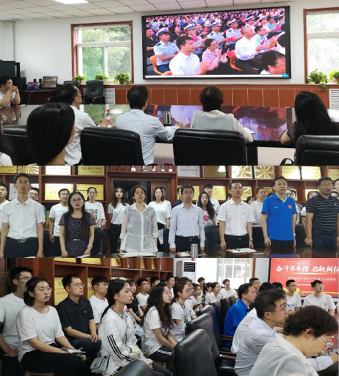 7月1日8点,材料学院党委组织各党支部集中组织收听收看习近平总书记在庆祝中国共产党成立100周年大会上重要讲话直播,学院各党支部、各科研中心等组织了收看,并及时组织了观后研讨交流。