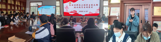 材料成形及控制工程专业学生党支部通过集中学习、观看视频、主题演讲、安全知识竞赛等四种形式开展学习。首先,支部党员深入学习了新时代总体国家安全观的主要内容、范围领域和重要意义,并发表自己的心得看法,共同探讨如何将维护国家安全贯彻落实到实践中去;其次,整理了《中华人民共和国国家安全法》等涉及国家安全相关法律制度的内容和历史事件,通过主题演讲的形式传达给支部的同志们;第三,支部组织开展“国家安全”主题知识竞赛,丰富学习形式;随后支部全体成员集中观看了警示教育片,并结合工作实际交流心得感悟。