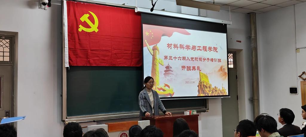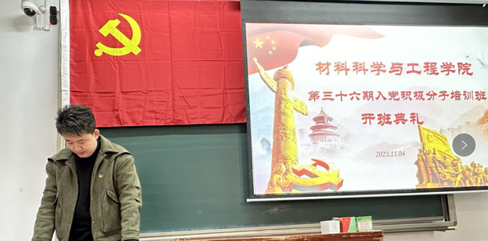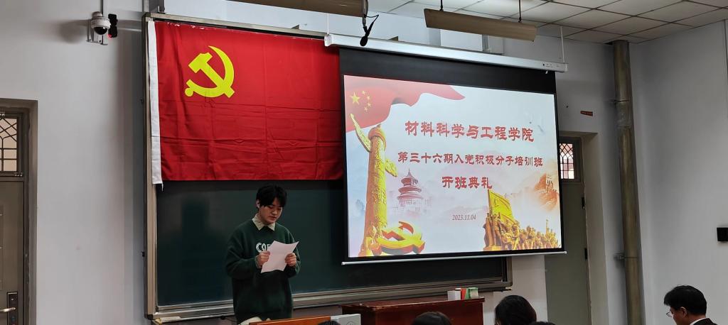 11月4日上午8时,举行了入党积极分子培训班开班典礼。院党委书记廖海洪,院团委书记郝诗韵,党委组织员李艳以及各学生党支部书记出席开班典礼。开班典礼在国际歌中拉开序幕。开班典礼上,郝诗韵同志宣读《leyu.com分党校学员守则》,李艳同志对此次院党课的各培训环节进行安排,复合材料与工程专业学生党支部胡禹辰同学代表全体入党积极分子发言。