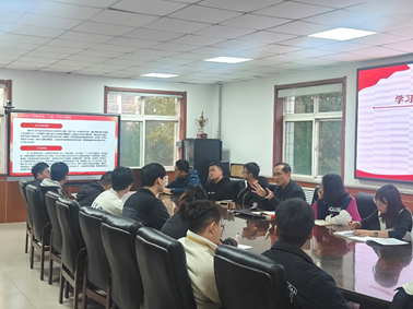11月11日下午四点,研究生材料加工第三、第四党支部在学院会议室召开党的二十届三中全会精神学习会,副院长刘斌同志为包联支部作题为《深入学习党的二十届三中全会精神,奋力谱写中国式现代化新篇章》的专题党课。研究生材料加工第三、第四党支部全体党员和入党积极分子参加此次会议,第三支部书记张丹同志主持会议。