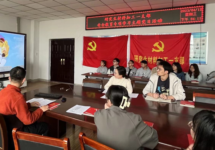 4月12日下午,研究生材料加工一支部在液态成形中心会议室召开集中学习会,学习内容为《中国共产党普通高等学校基层组织工作条例》和国家安全教育知识。会议由党支部副书记聂海龙主持,支部全体党员参加会议。